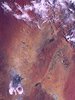 Διακρίνεται η Ερημος Σίμπσον, με 451 km πλάτος και 547 km μήκος, νοτιοανατολικά των πηγών Αλις. Κάτω αριστερά φαίνεται η λίμνη Εύρ, λίμνη με θαλάσσιο νερό κάτω από το επίπεδο της θάλασσας. Κάτω δεξιά είναι η λίμνη Μπλάντς. Σχηματισμοί από άμμο φαίνονται νότια και ανατολικά της λίμνης Εύρ, από τους δυνατούς νότιους ανέμους που κυριαρχούν στην περιοχή.