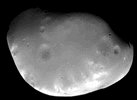 ΦόβοςΟ Φόβος, όπως και ο Υπερίων ένας από του δορυφόρους του Κρόνου, δεν έχει σφαιρικό σχήμα, αλλά ακανόνιστο. Η μέση διάμετρός του είναι 27 km και το πιο αξιοσημείωτο χαρακτηριστικό του είναι τα μεγάλα αυλάκια στην επιφάνειά του. Τα αυλάκια δείχνουν να εκτείνονται ακανόνιστα προς όλες τις κατευθύνσεις από το γιγαντιάιο κρατήρα Stickney, μέχρι τον αντίποδά του. Το πλάτος και το μήκος των αυλακιών αυτών κυμαίνεται από 100 - 200 m και 10 - 20 m αντίστοιχα. |